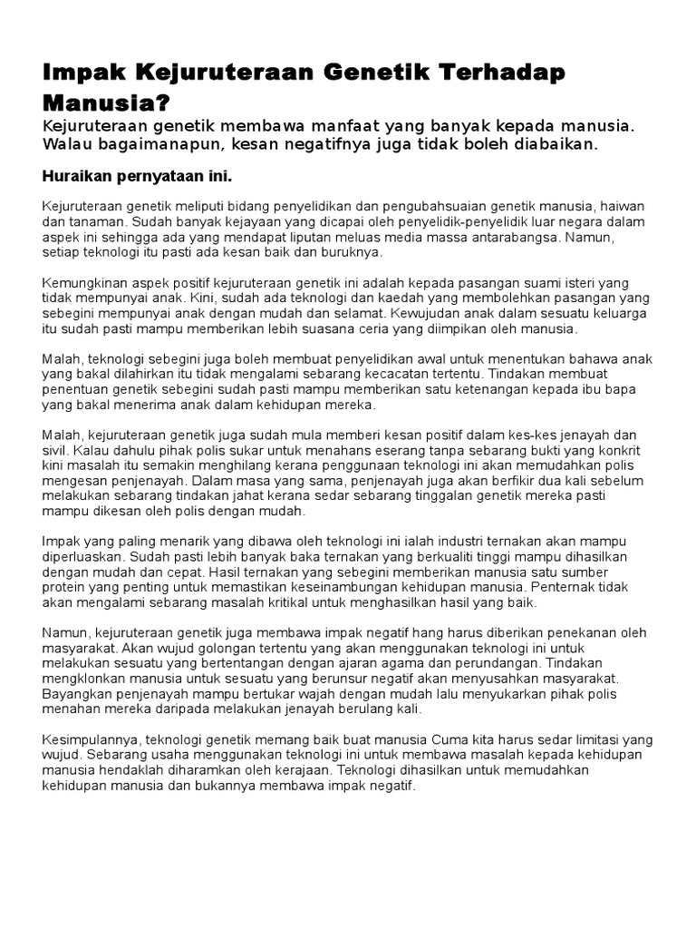 Kebaikan Dan Keburukan Teknologi Kejuruteraan Genetik Pada Manusia