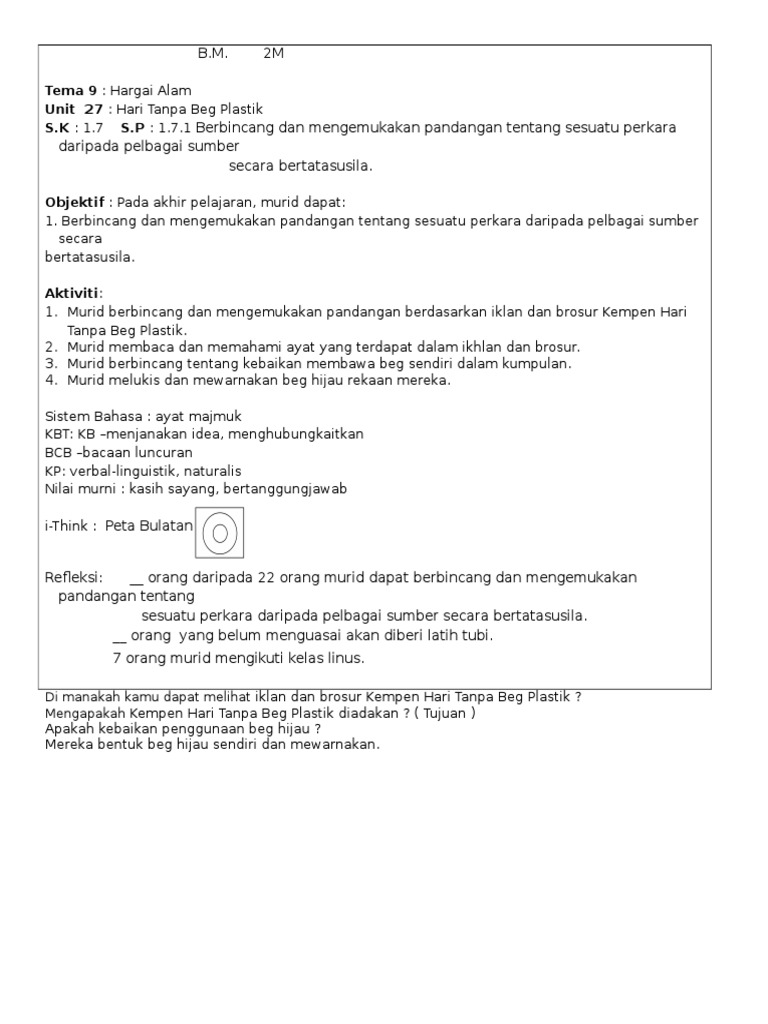 Kebaikan hari tanpa beg plastik. Menurut kaji selidik yang dilaksanakan oleh jabatan alam sekitar taman dan rekreasi pada tahun 2005 telah mendapati bahawa jumlah sisa pepejal yang dikutip mencapai 189 000 ton setahun. Jika lebih banyak plastik kita gunakan hari ini berkuranglah bekalan minyak kita pada masa hadapan. Selain itu plastik juga diperbuat dari sebuah sumber yang amat berharga iaitu minyak. Lot 1 jalan renggam 15 5 off persiaran selangor seksyen 15 40200 shah alam selangor darul ehsan.