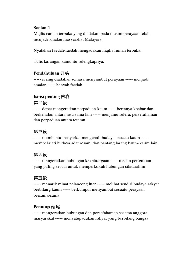 Rumah Terbuka Karangan Cth