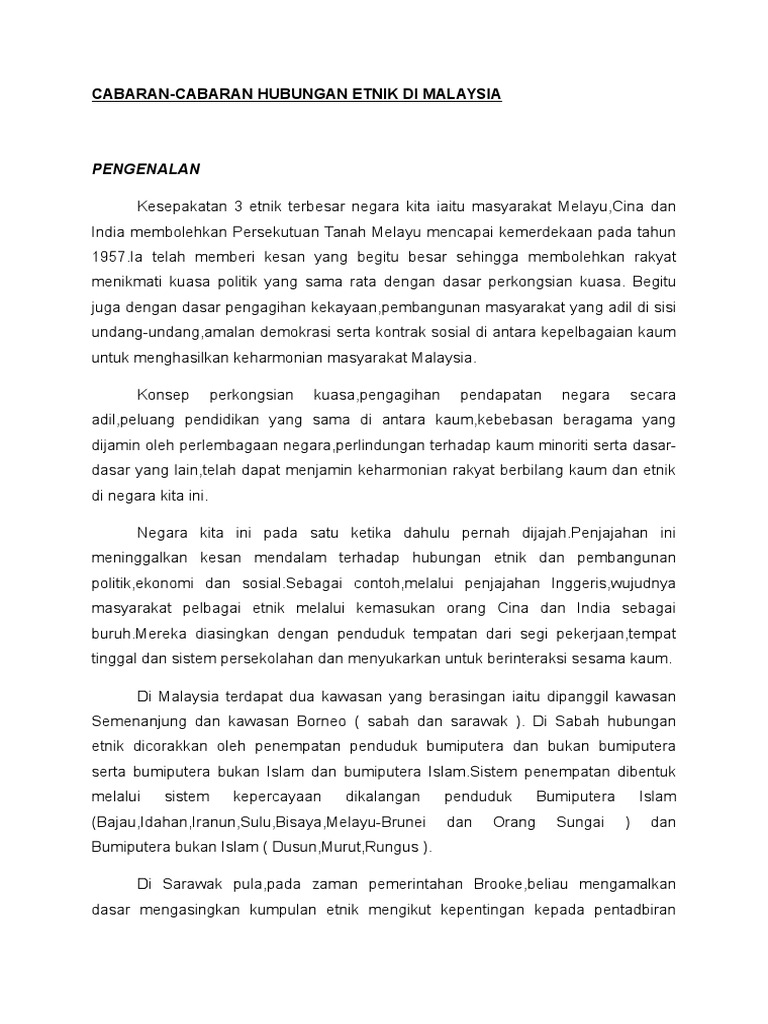 Hubungan Etnik Perlembagaan Malaysia Hubungan Etnik