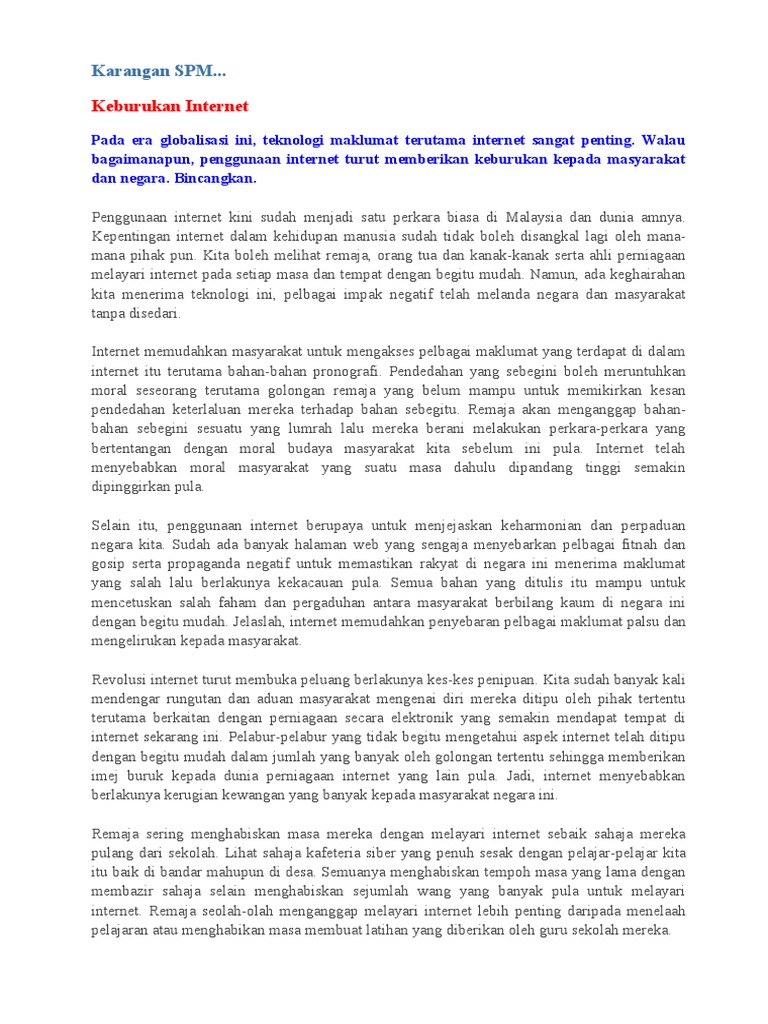 Karangan Kebaikan Penggunaan Internet