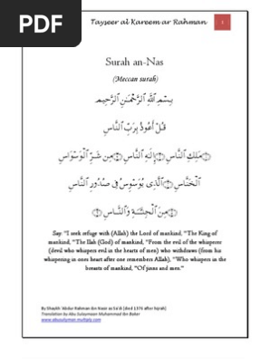 Tafsir Surah An Nas Tayseer Al Kareem Ar Rahman Tafseer Imam As Sadi Quran Religious Faiths