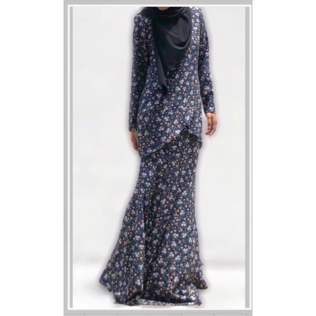 Baju Kurung Moden Lace Lengan Rompol Kain Duyung Kembang Shopee Malaysia