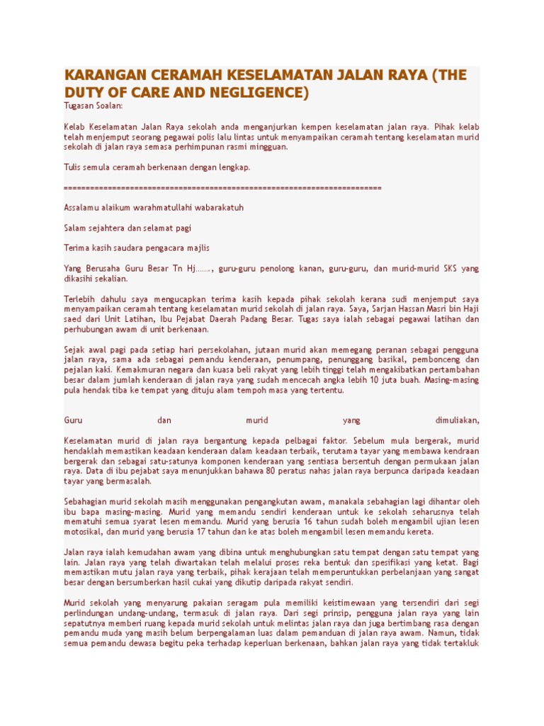 Karangan Ceramah Keselamatan Jalan Raya Docx