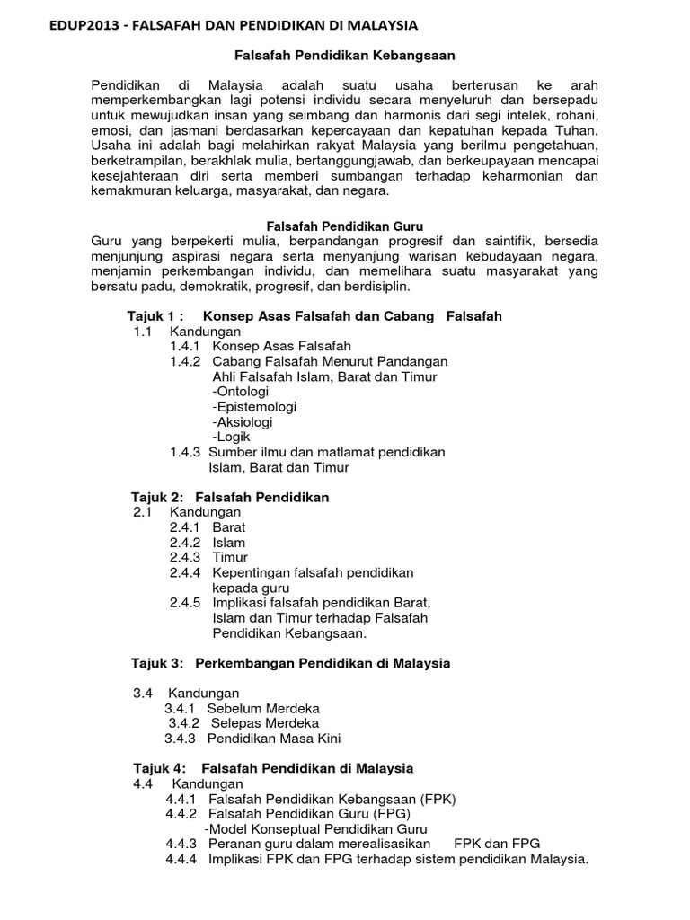 Doc Kerja Kursus Falsafah Pendidikan Di Malaysia Mo Jo Academia Edu