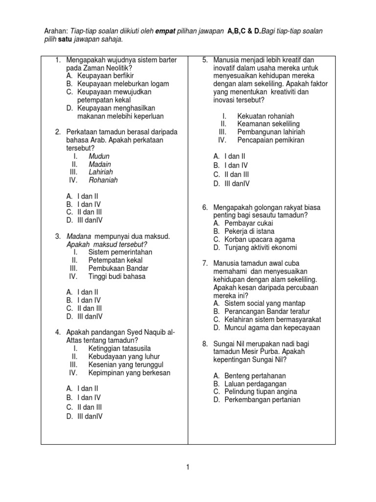Sejarah Tingkatan 4 Bab 1 Tamadun Awal Manusia Latihan Soalan Subjektif 1 Nota Spm Tatapan Minda