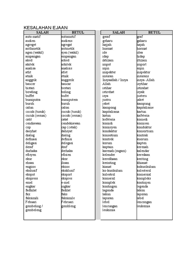 Senarai Kesalahan Ejaan Dan Imbuhan Bahasa Melayu