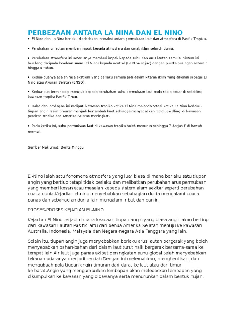 El Nino Kesan Terhadap Sistem Atmosfera Dan Sistem Hidrologi Lautan Pasifik