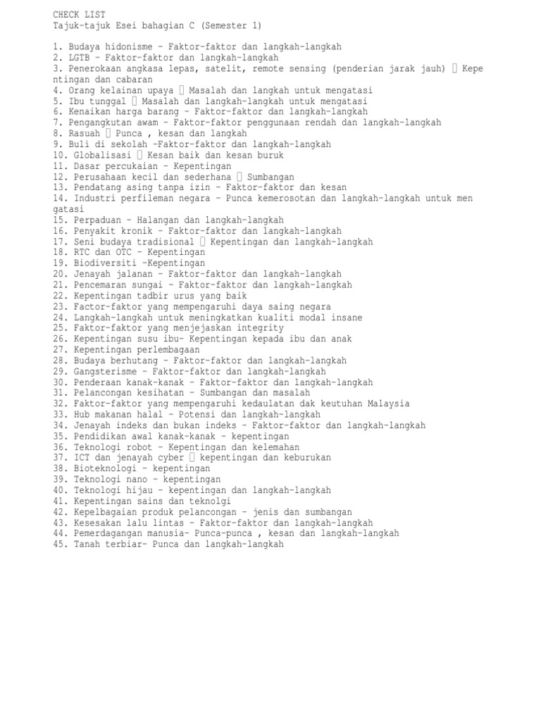 Esei Pengajian Am Pdf Koleksi Esei Peperiksaan Percubaan Pengajian Am 1 Stpm 2017 Trial Smk Gajah Berang Sem 1 Stpm 2017 20 Banyak Masalah Yang Course Hero
