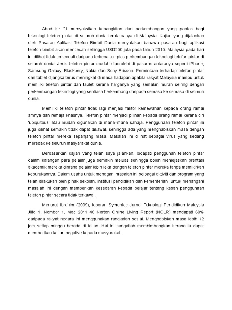 Karangan Kesan Kesan Penggunaan Telefon Pintar Secara Tidak Terkawal