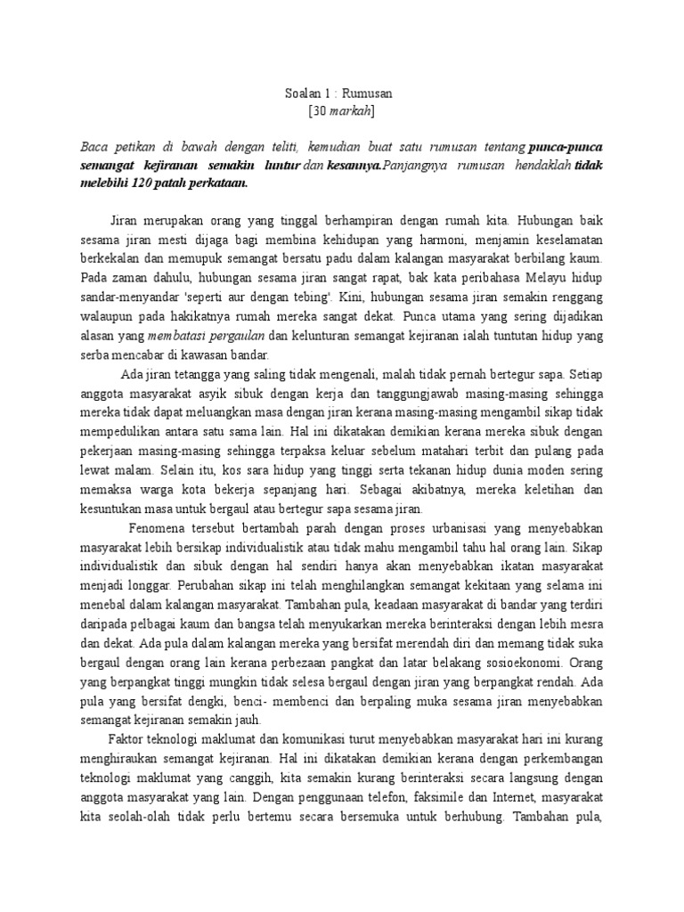 Semangat Kejiranan Contoh Karangan Pmr Spm