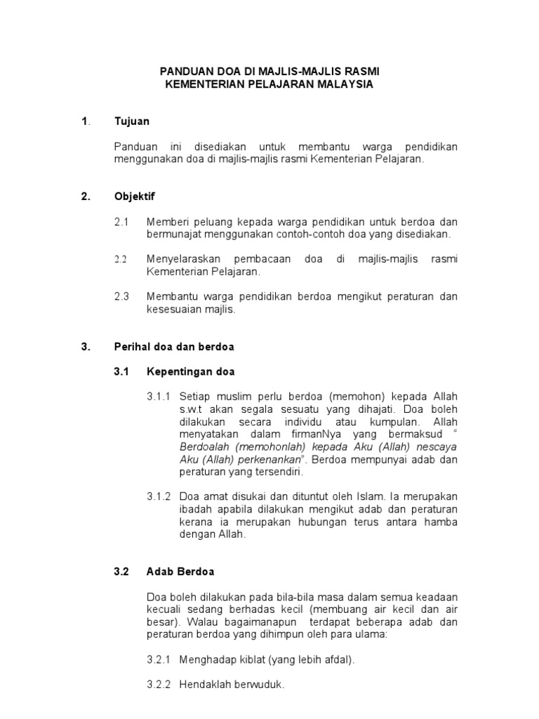 Koleksi Doa Di Majlis Majlis Rasmi Dan Separuh Rasmi Kerajaan Doa Selamat Majlis Rasmi 4
