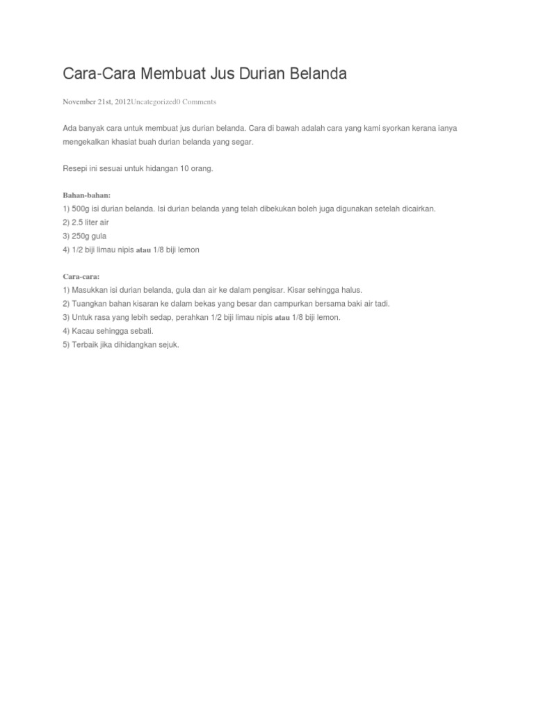 Cara Cara Membuat Jus Durian Belanda Untuk Air Balang