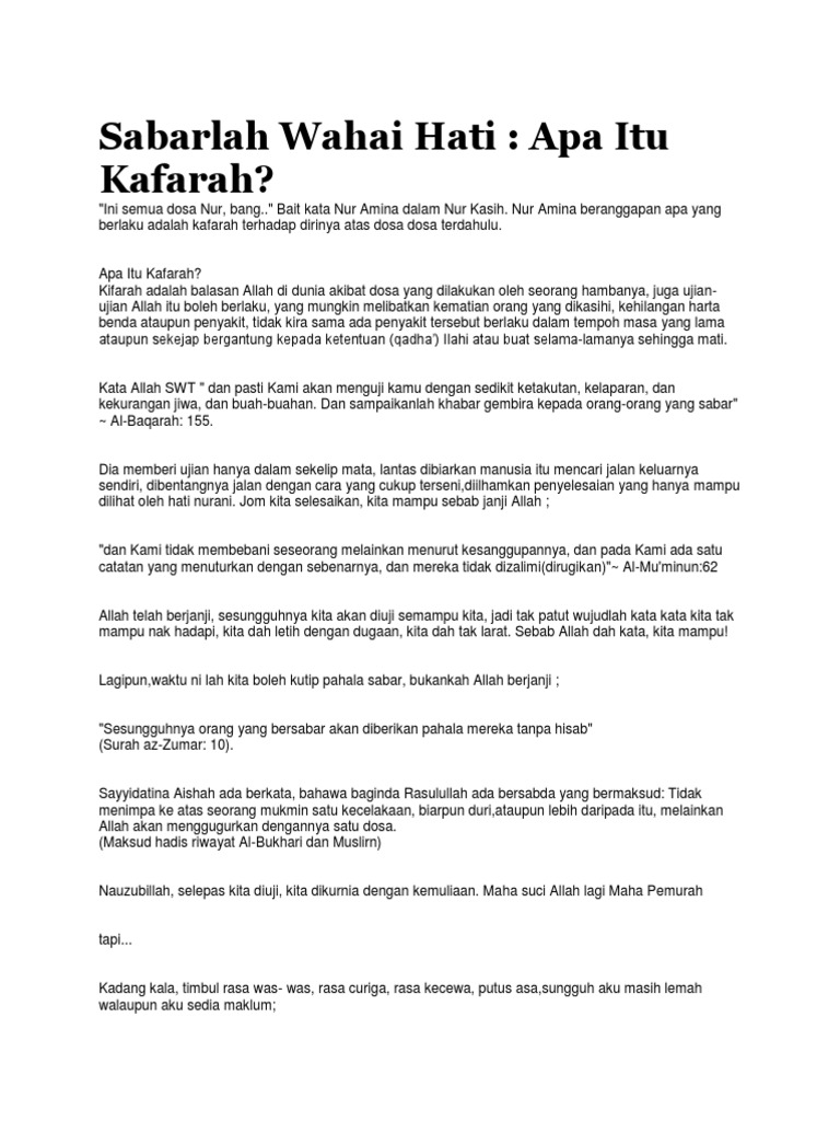 Kifarah Itu Pasti Tanpa Ada Kaki Dan Kita Tak Boleh Lari Cikcappuccinolatte