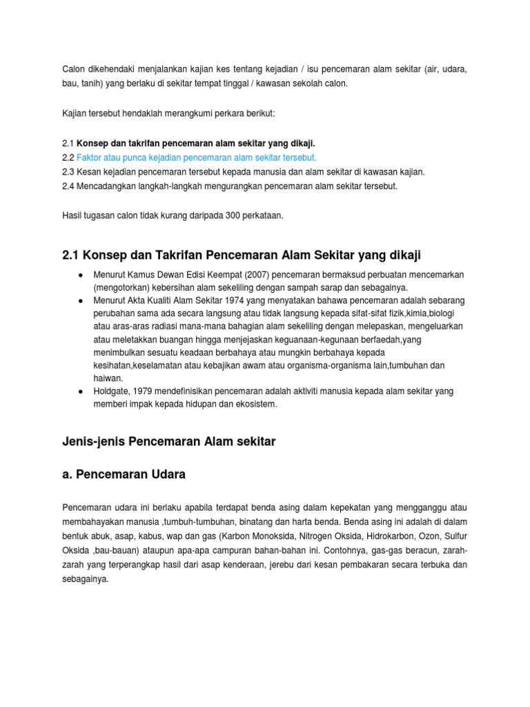 Pencemaran Alam Sekitar Docx Sudah Terang Lagi Bersuluh Pencemaran Alam Sekitar Merupakan Masalah Yang Menjadi Liputan Utama Akhbar Masa Kini Dan Course Hero