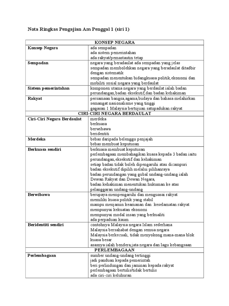 Nota Ringkas Pengajian Am Penggal 1 S1