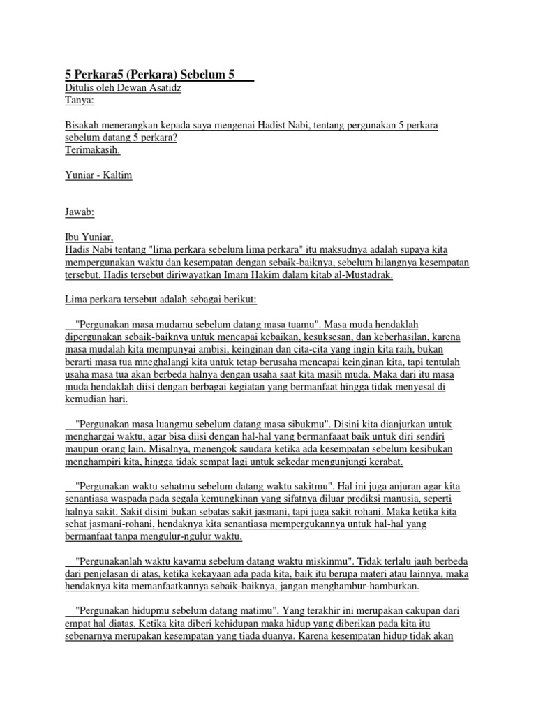 Ingat Lima Perkara Sebelum Lima Perkara Short Essay Self Reminder Best Quotes