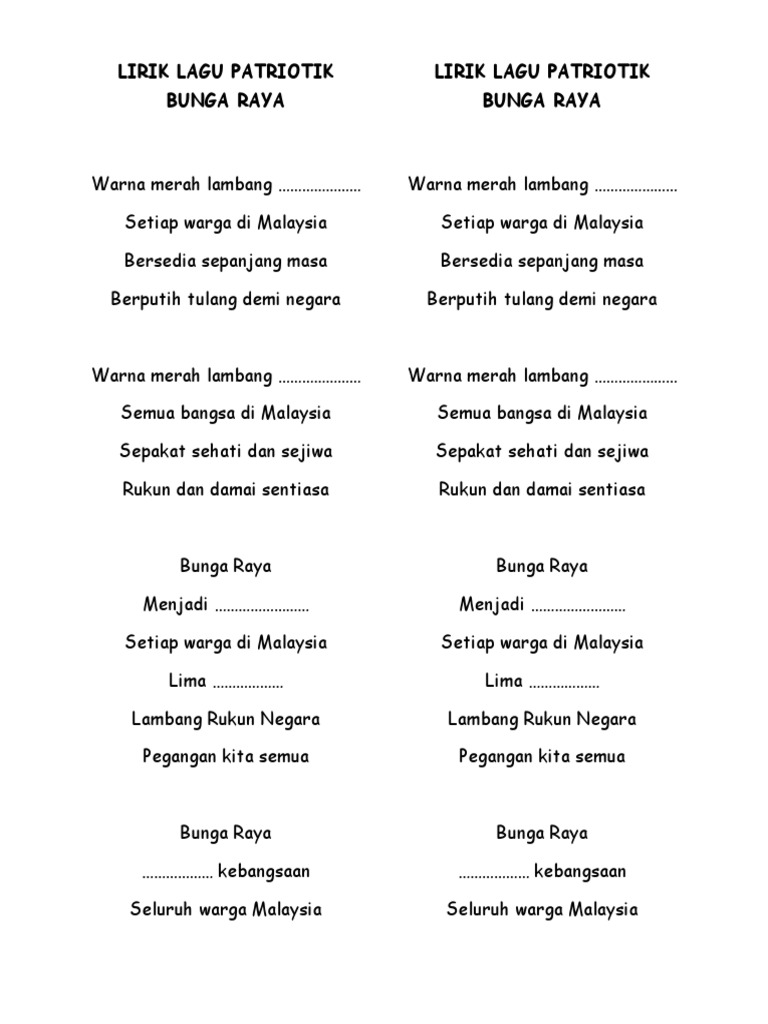 Lagu Kebangsaan Lirik Lagu Patriotik Malaysia