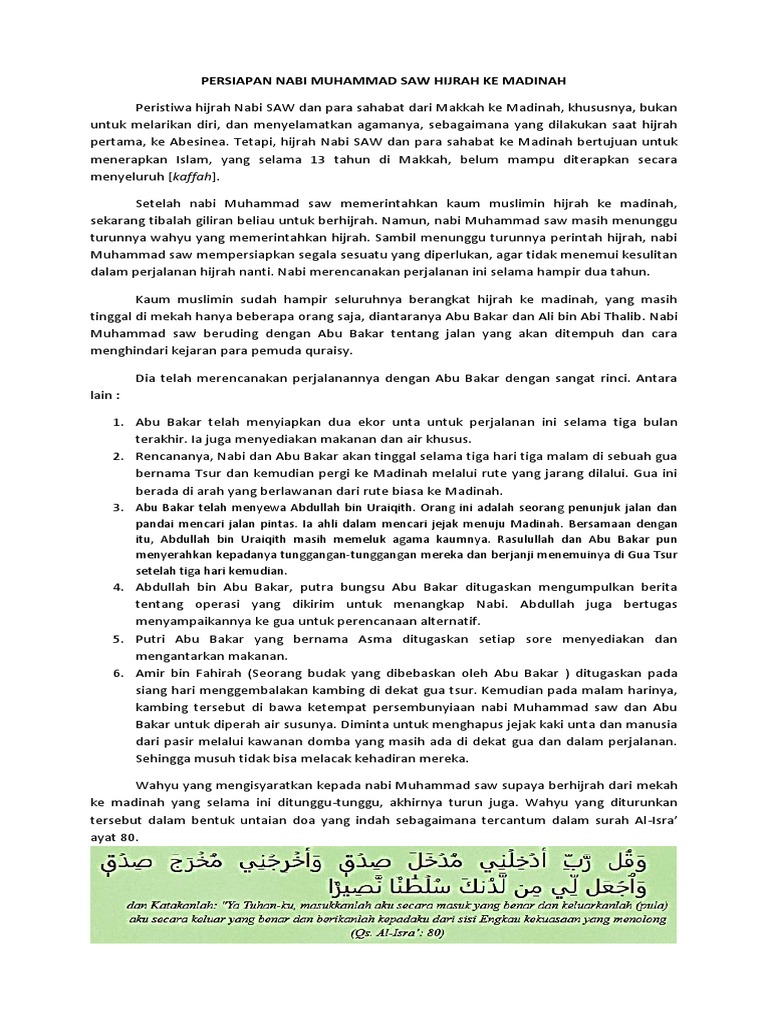 Persiapan Nabi Muhammad Saw Hijrah Ke Madinah Docx