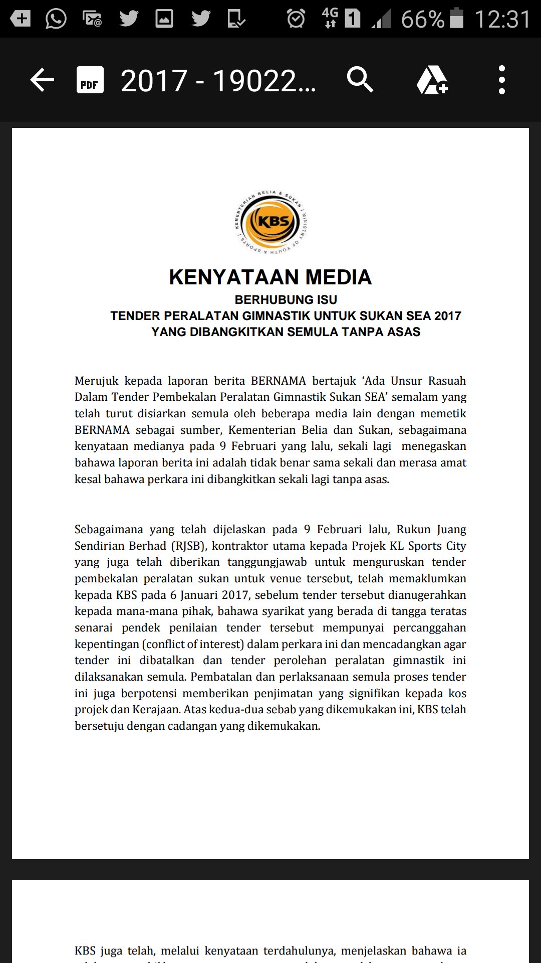 Kbsmalaysia On Twitter Penting Kenyataan Media Kbs Isu Tender Peralatan Gimnastik Utk Sukan Sea 2017 Yg Dibangkitkan Semula Tanpa Asas