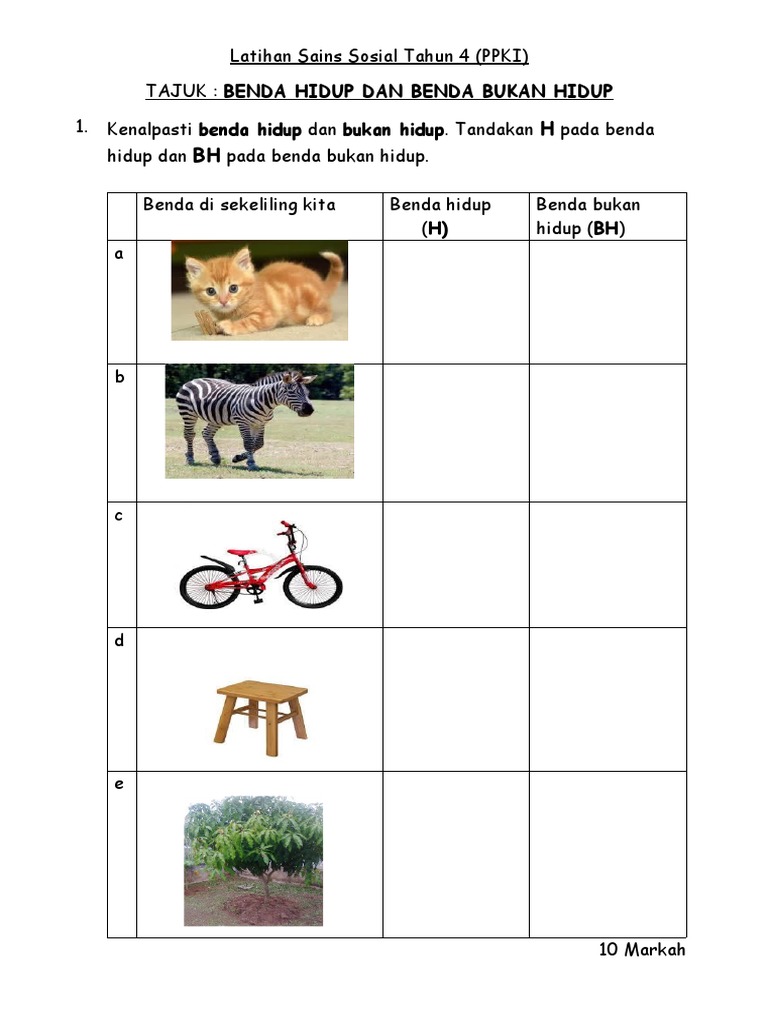 Latihan Benda Hidup Dan Benda Bukan Hidup