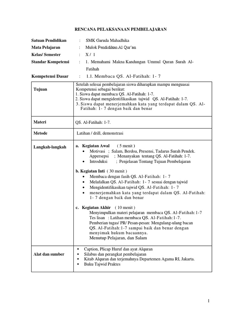 Pdf Soal Uh Pai Kelas 1 Bab Surat Alfatihah Semester Ady Purnomo Academia Edu