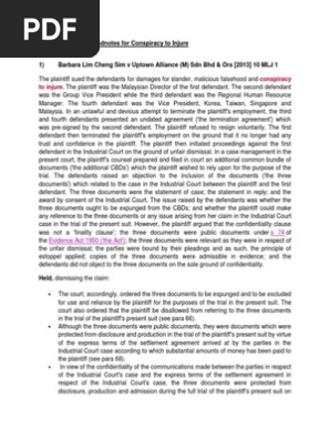 List Of Cases And Headnotes For Conspiracy To Injure Docx Document
