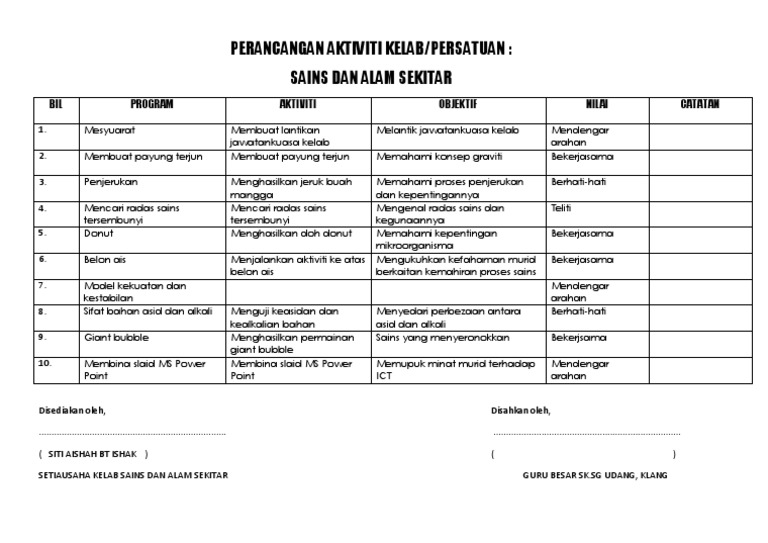 Perancangan Aktiviti Kelab Persatuan Sains Dan Alam Sekitar