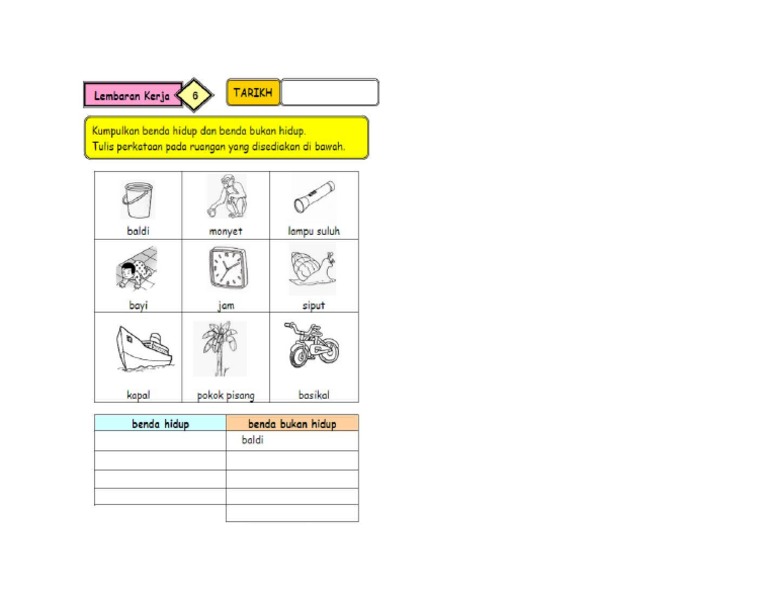 Lembaran Kerja Sains Tahun 1 Benda Hidup Dan Bukan Hidup
