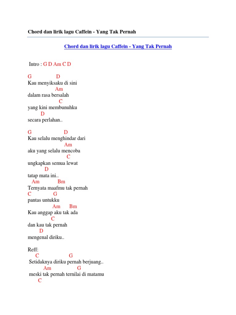 Chord Dan Lirik Lagu Caffein Yang Tak Pernah