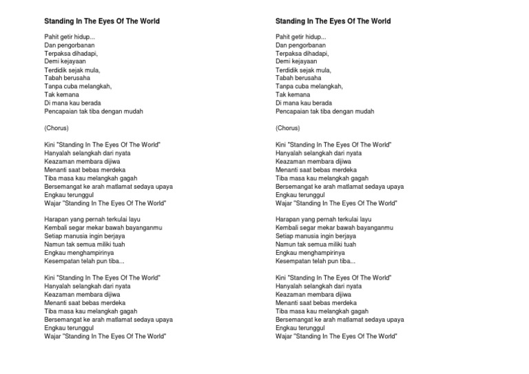 Lirik Kord Gitar Lagu Melayu Standing In The Eyes Of The World Ella