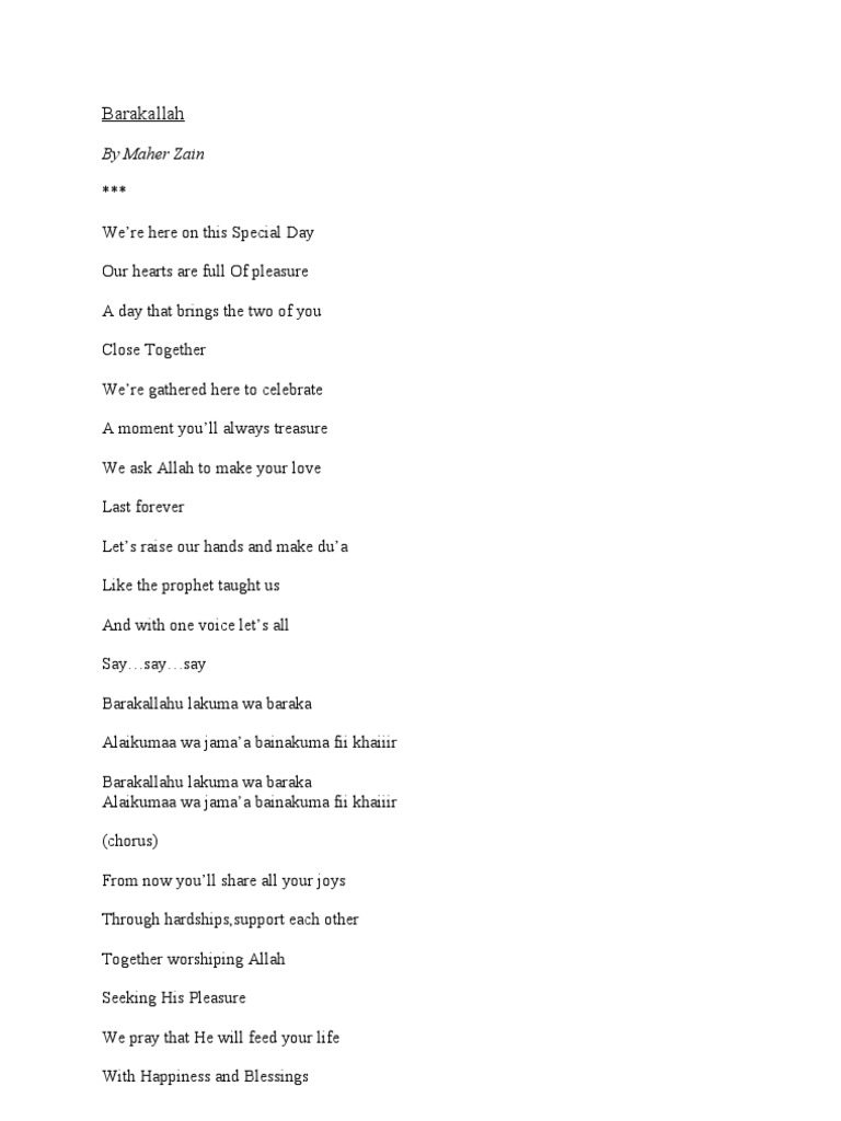 Maher Zain Baraka Allahu Lakuma Lyrics Odin Weblog