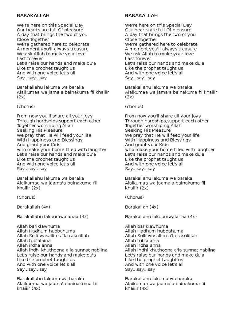 Lirik Lagu Baraka Allahu Lakuma Religious Behaviour And Experience