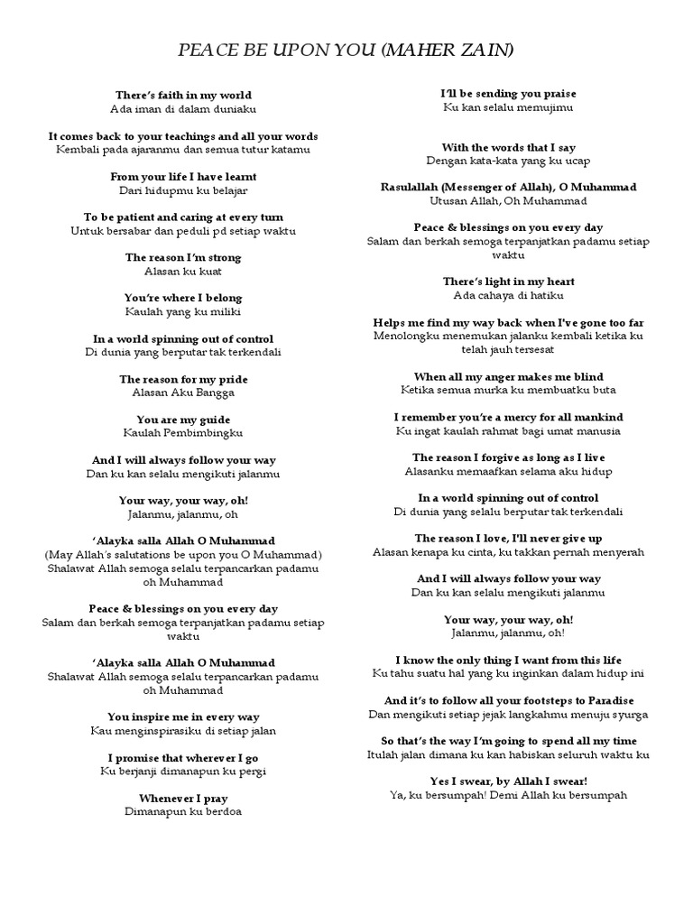 Lirik Lagu Peace Be Upon You Maher Zain Wattpad