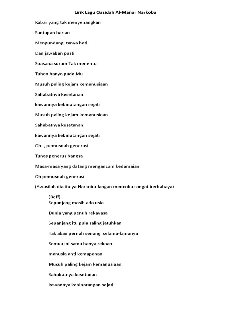Lirik lagu perubahan al manar penulis. Lirik lagu dan terjemahan there s nothing holdin me back shawn mendes. Lirik lagu qasidah almanar teman sejati. Lagu qasidah modern populer musuh paling kejam kemanusiaan sahabatnya kesetanan kawannya kebinatangan sejati oh pemusnah generasi tunas penerus bangsa masa masa kan datang mengancam kedamaian oh pemusnah generasi awaslah beliau itu ya narkobajangan mencoba sangat berbahaya.