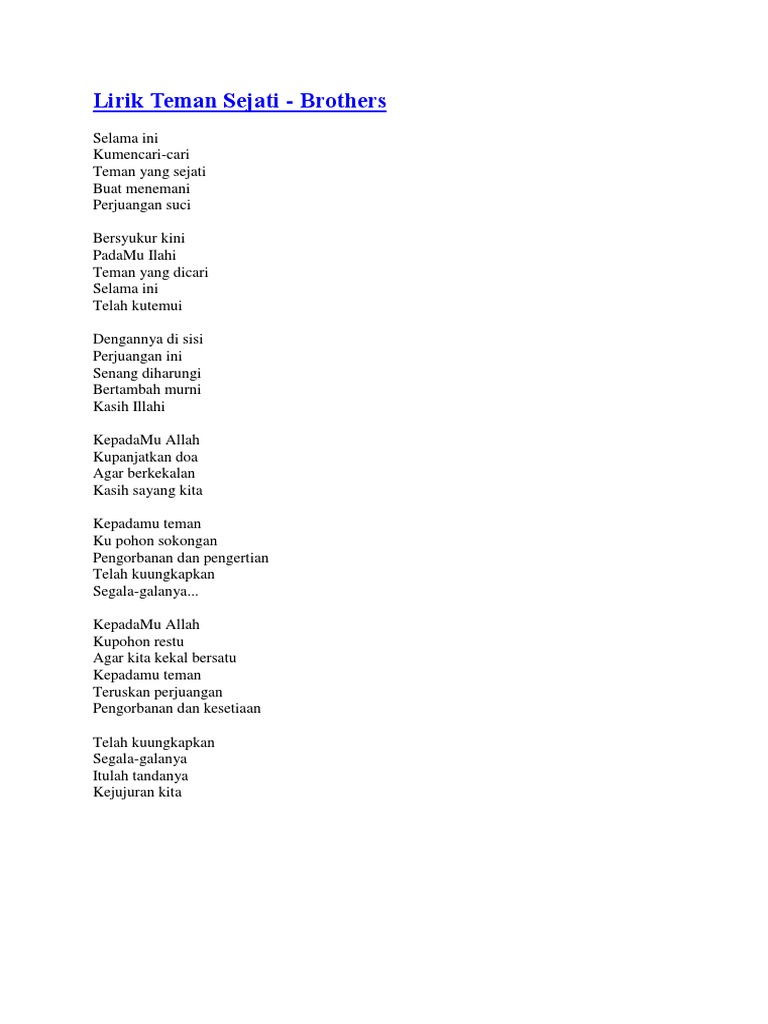 Lirik Lagu Teman Sejati Buat Menemani Perjuangan Suci Teman Yang Dicari Selama Ini Telah Kutemui