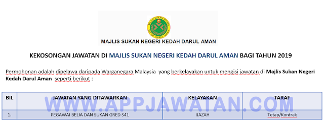 Jawatan Kosong Majlis Sukan Negeri Kedah Kelayakan Pmr Pt3 Ejawatankini Com