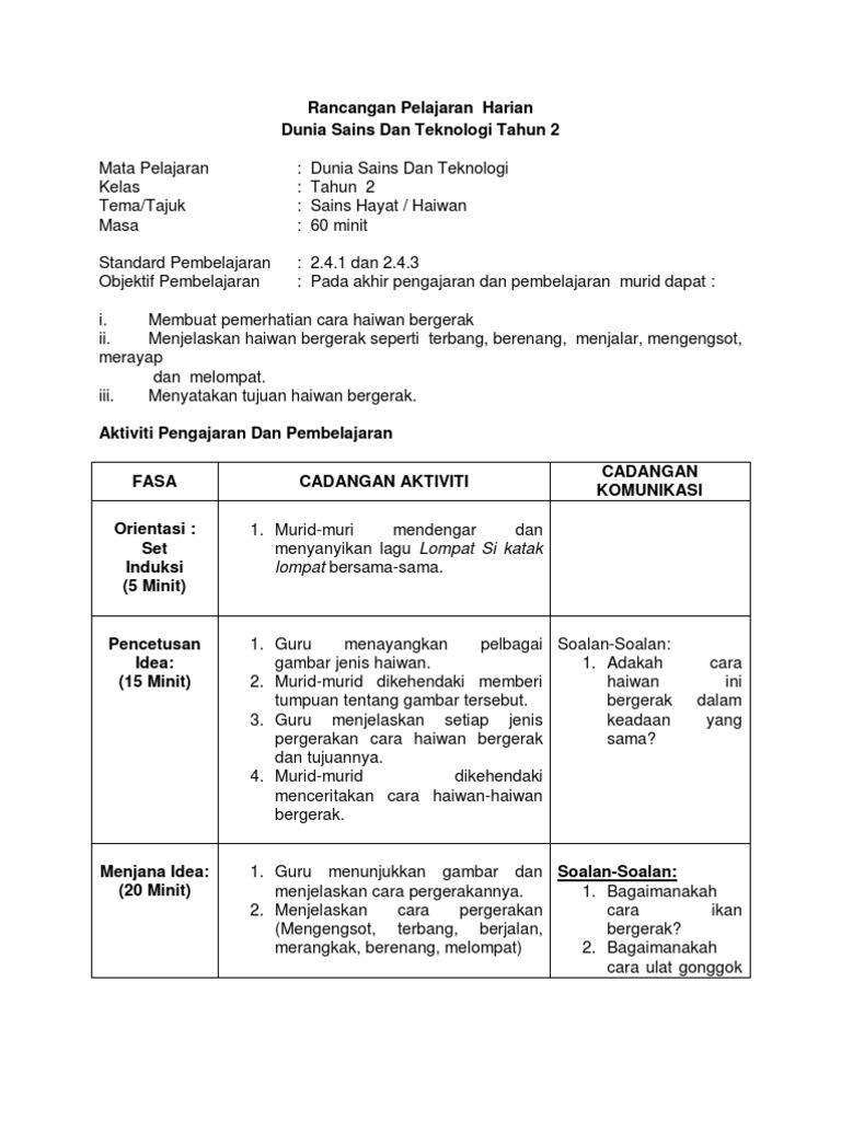 Rancangan Pelajaran Harian Dunia Sains Dan Teknologi Tahun 2