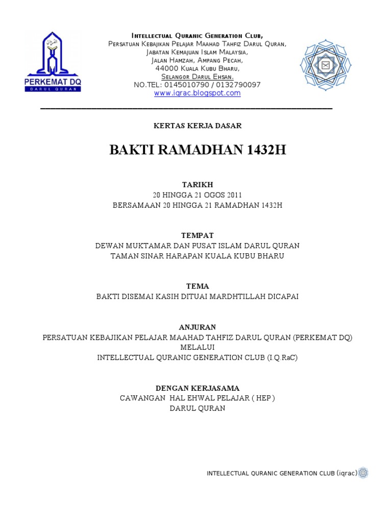 Bakti Ramadhan 1432h Kertas Kerja Dasar
