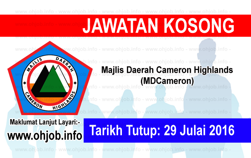 Pemohon hendaklah menulis nama jawatan yang dipohon disudut atas sebelah kiri sampul surat dan dialamatkan kepada yang dipertua majlis daerah cameron highlands peti surat 66 39007 tanah rata cameron highlands u p. January 16 2020 admin 2020 jawatan kosong kerajaan pahang 0 sila klik x untuk tutup pemohon daripada warganegara malaysia yang berminat dan memenuhi kriteria yang telah ditetapkan dijemput untuk membuat permohonan jawatan kosong di majlis daerah cameron highlands mdch sebagai. Berikut merupakan maklumat iklan kerja kosong yang ditawarkan oleh majikan terlibat. Jawatan kosong di majlis daerah cameron highlands mdch 21 jan 2020 jawatan kosong 2020 di majlis daerah cameron highlands mdch permohonan adalah dipelawa daripada warganegara malaysia yang berkelayakan dan berumur tidak kurang dari 18 tahun pada tarikh tutup iklan ditawarkan untuk memohon jawatan kosong di majlis daerah cameron highlands mdch.