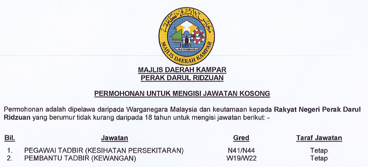 Jawatan Kosong Terkini Di Majlis Daerah Kampar Appjawatan Malaysia