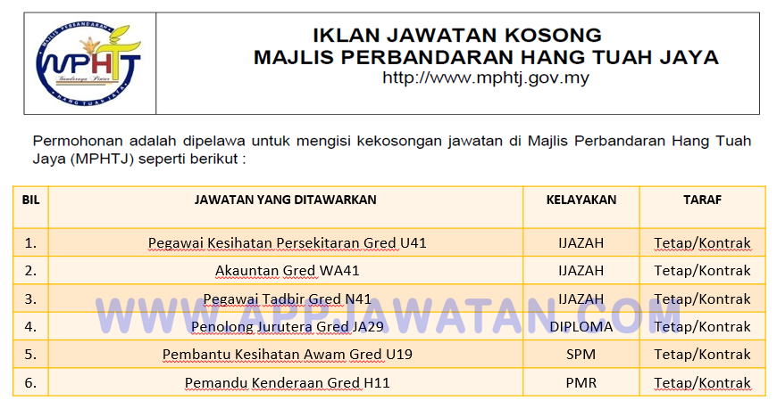 Jawatan Kosong Terkini Di Majlis Perbandaran Hang Tuah Jaya Mphtj Appjawatan Malaysia