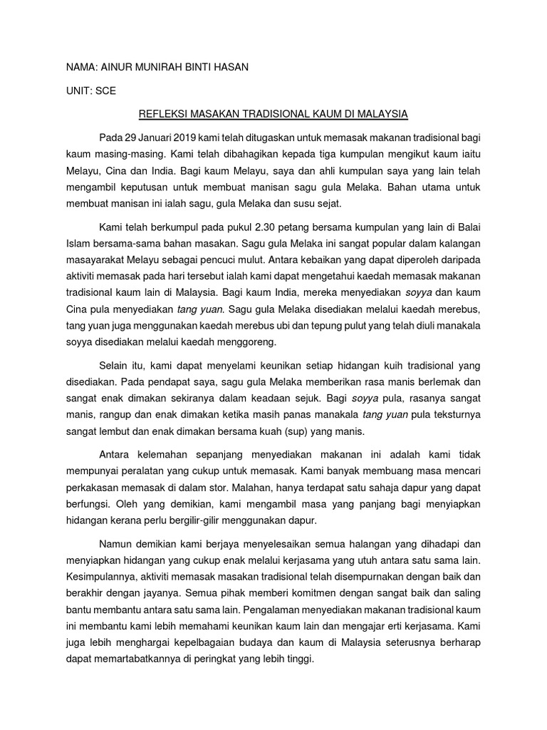Refleksi Masakan Tradisional Kaum Di Malaysia Docx