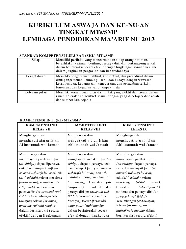 001 2 Kurikulum Nasional Aswaja Dan Ke Nu An Smp Mts