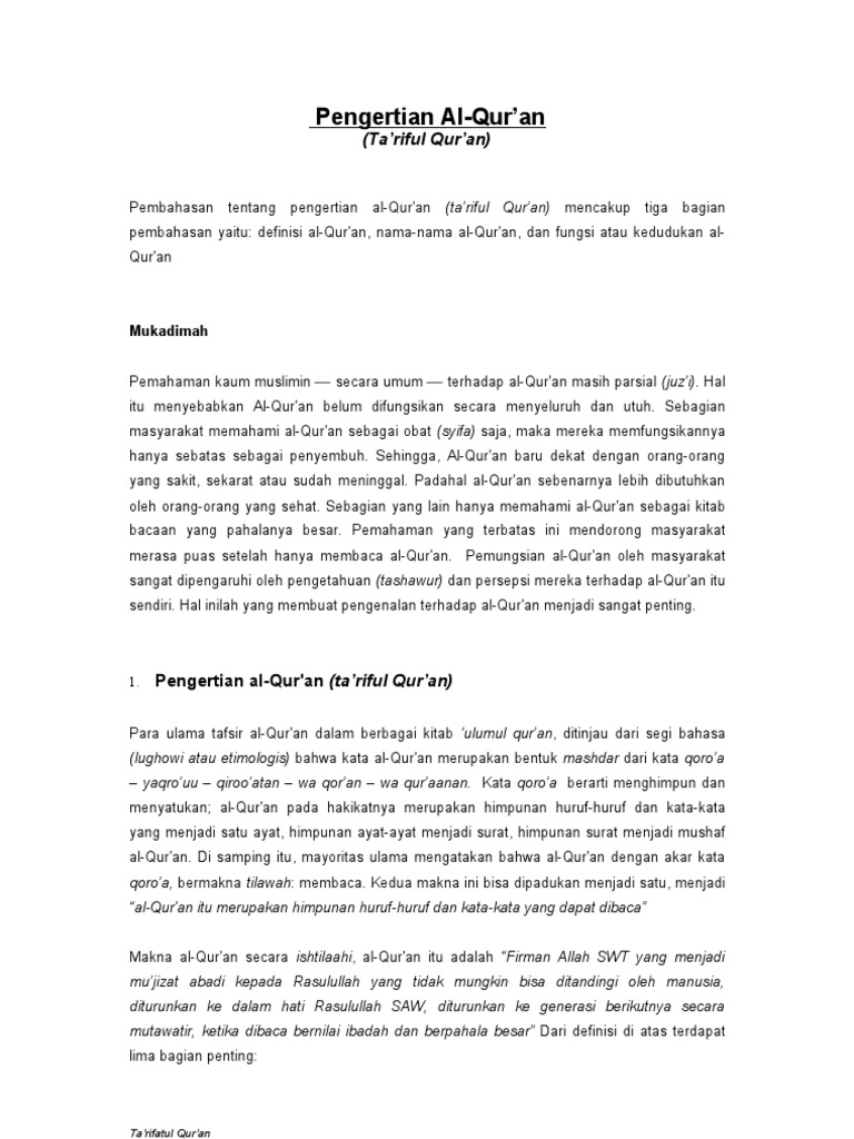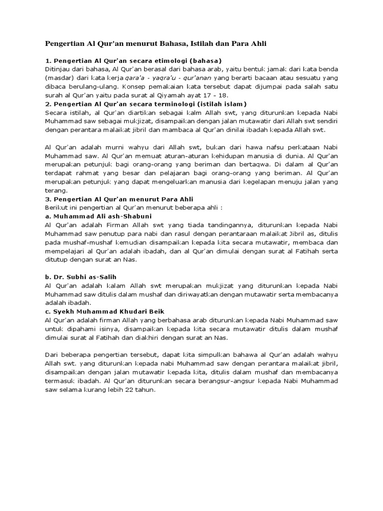 Doc Pengertian Al Quran Menurut Para Ahli Pajar Permana Academia Edu
