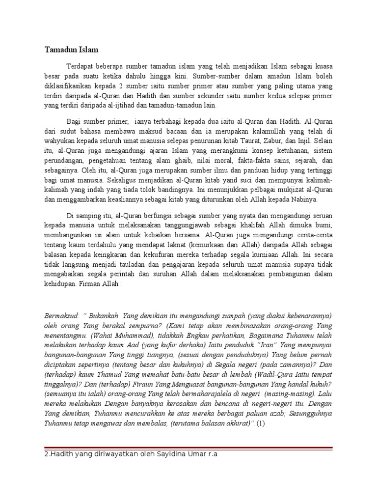Tamadun Islam Kedudukan Al Quran Sebagai Sumber Tamadun Islam