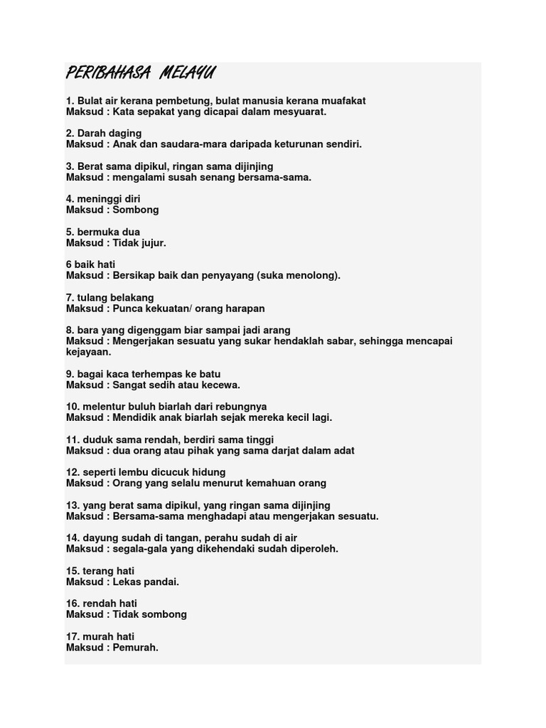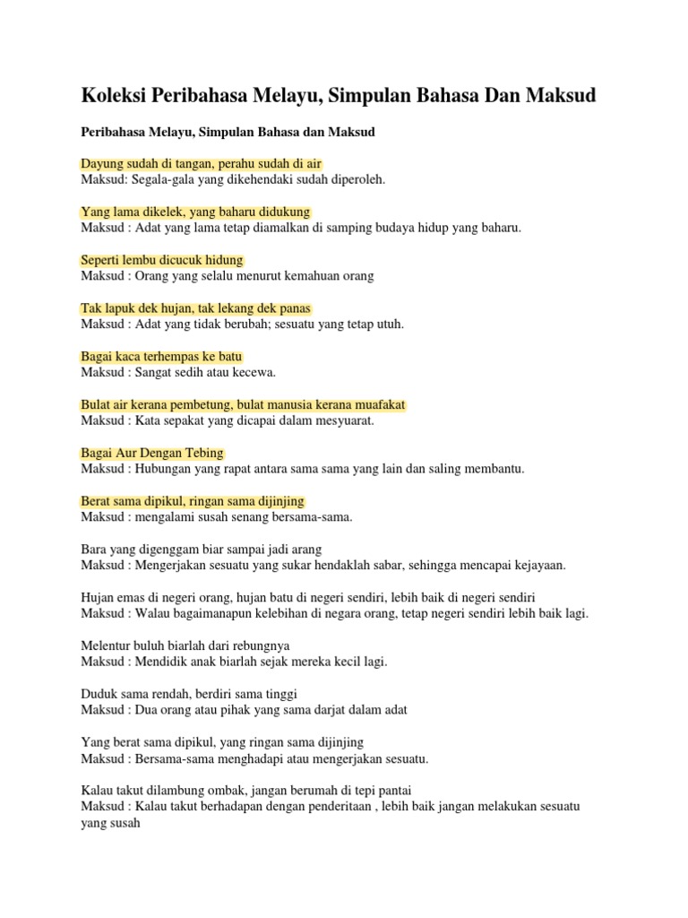 Doc Senarai Peribahasa Dalam Buku Teks Tingkatan Eeeee Waaaa Academia Edu