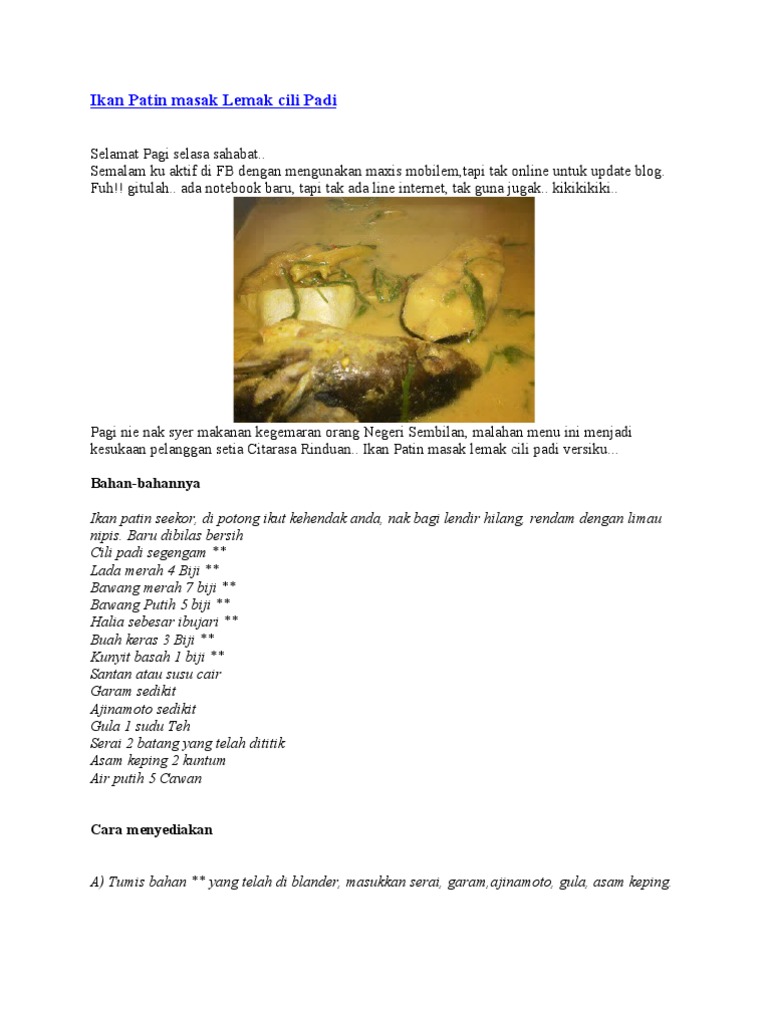 Resipi Ikan Patin Sambal Cili Padi Menu Istimewa Orang Pahang