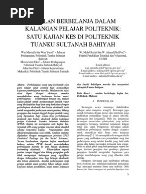 Pdf Pola Perbelanjaan Dalam Kalangan Mahasiswa Satu Kajian Perbandingan Antara Ipta Dan Ipts