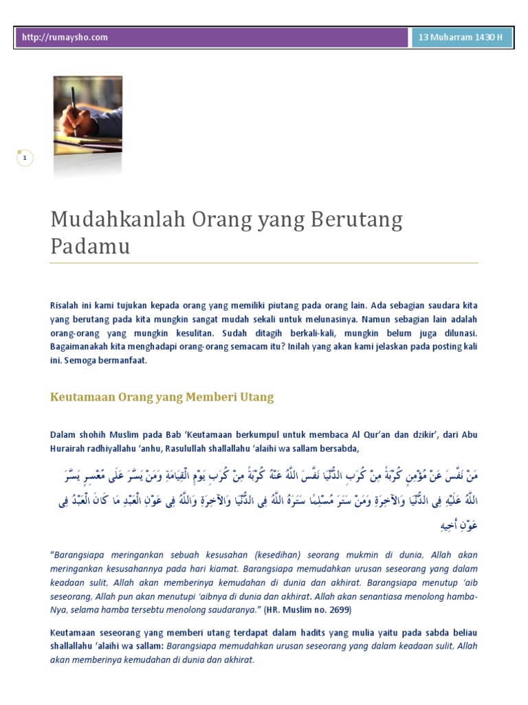 Mudahkanlah Orang Yang Berutang Padamu Rumaysho Com